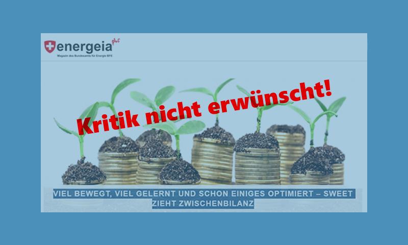 Regelmässig wird in den schönsten Farben und Formen über die “Forschung” berichtet – so etwa gerade wieder im online Magazin “energeia-plus” mit der Headline: “Viel bewegt, viel gelernt und schon einiges optimiert – SWEET zieht Zwischenbilanz” (Beitrag in “energeia-plus”). Bei näherer Betrachtung des Beitrags zeigt sich, dass dieser praktisch ausschliesslich aus Eigenlob des BFE in Bezug auf Ausschreibungsprozesse besteht.