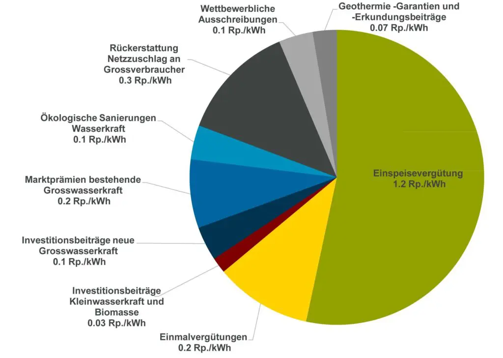 Bild 2: Zu den Kosten der Energiestrategie 2050 wird im BFE-Dokument nur ein Netzzuschlag von 2,3 Rp/kWh genannt und mit grossem Fleiss bis ins kleinste Detail aufgeschlüsselt. Im übrigen Dokument sucht man nach Begriffen wie «Kosten» oder «Preise» dagegen vergeblich (Grafik: Bundesamt für Energie)