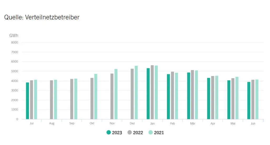 Bild 5. Die Menge an elektrischer Energie, die von den Endverbrauchern in der Schweiz im jeweiligen Monat bezogen wurde (Grafik: Swissgrid, Monatsreihenfolge winterzentriert umgestellt)