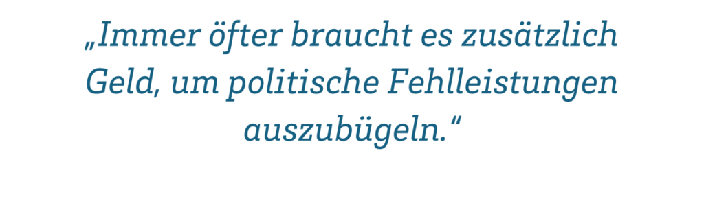 Die populären Begünstigungen sind überwiegend gesetzlich gebundene, oft sozialpolitisch, zunehmend auch klima- oder industriepolitisch begründete Staatsausgaben. In der Sozialpolitik steigen die Ansprüche allein aus demografischen Gründen. Andernorts, weil Fördergelder nicht wie erhofft wirken und deshalb nach üblicher politischer Logik einfach erhöht werden – nach dem Motto «mehr vom gleichen». Und immer öfter braucht es zusätzlich Geld, um politische Fehlleistungen auszubügeln.