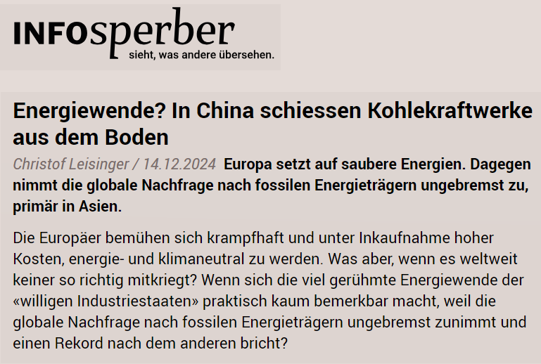 4. Die Chinesen bauen all die Kohlekraftewerke, um unter vielem anderen all die Dinge herzustellen, die wir dekadenten Europäer brauchen, um unsere illusionären “Energiewenden” in Gang zu halten. Wir haben uns weitestgehend abhängig gemacht von chinesischen Technologien, Rohstoffen und Produkten.